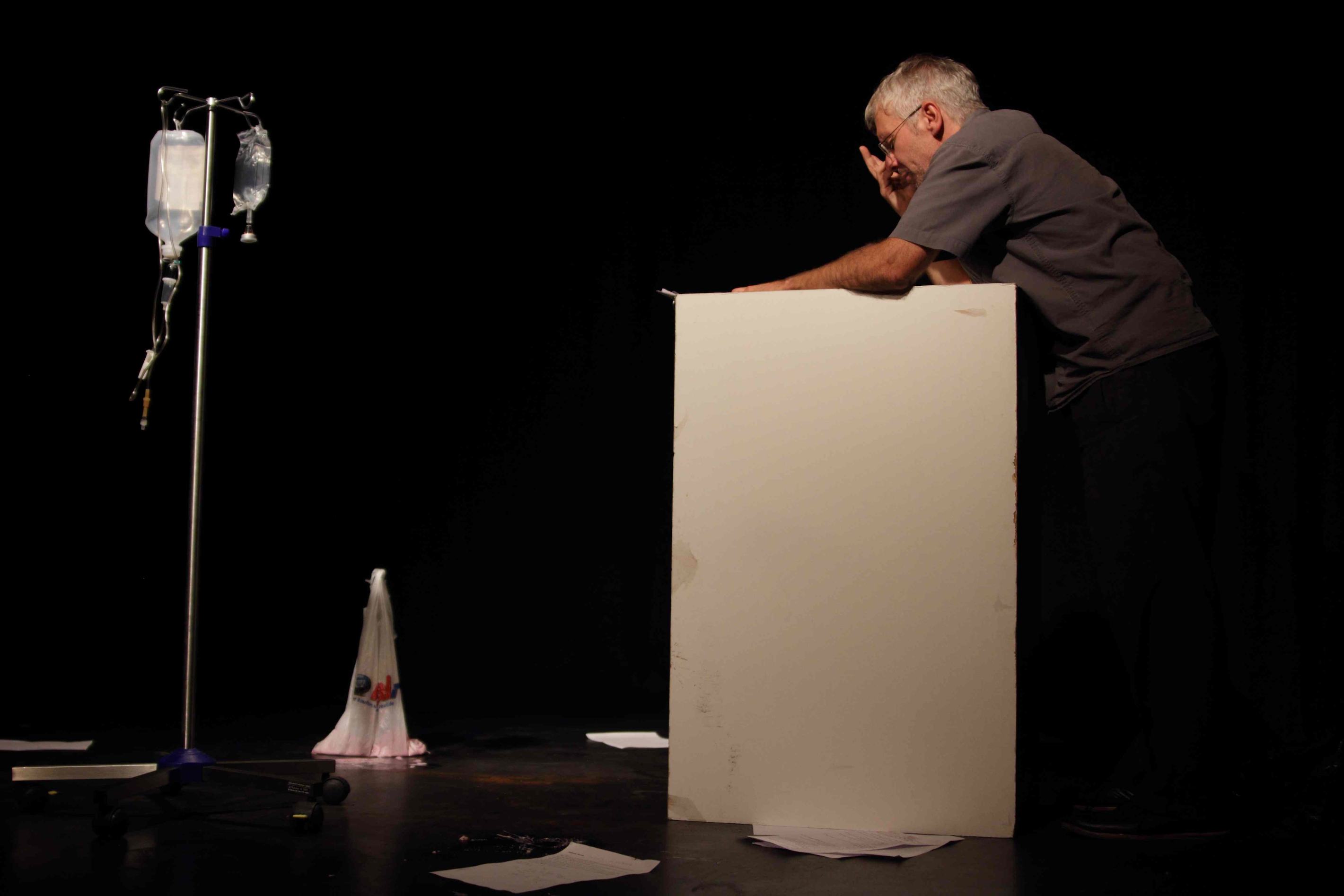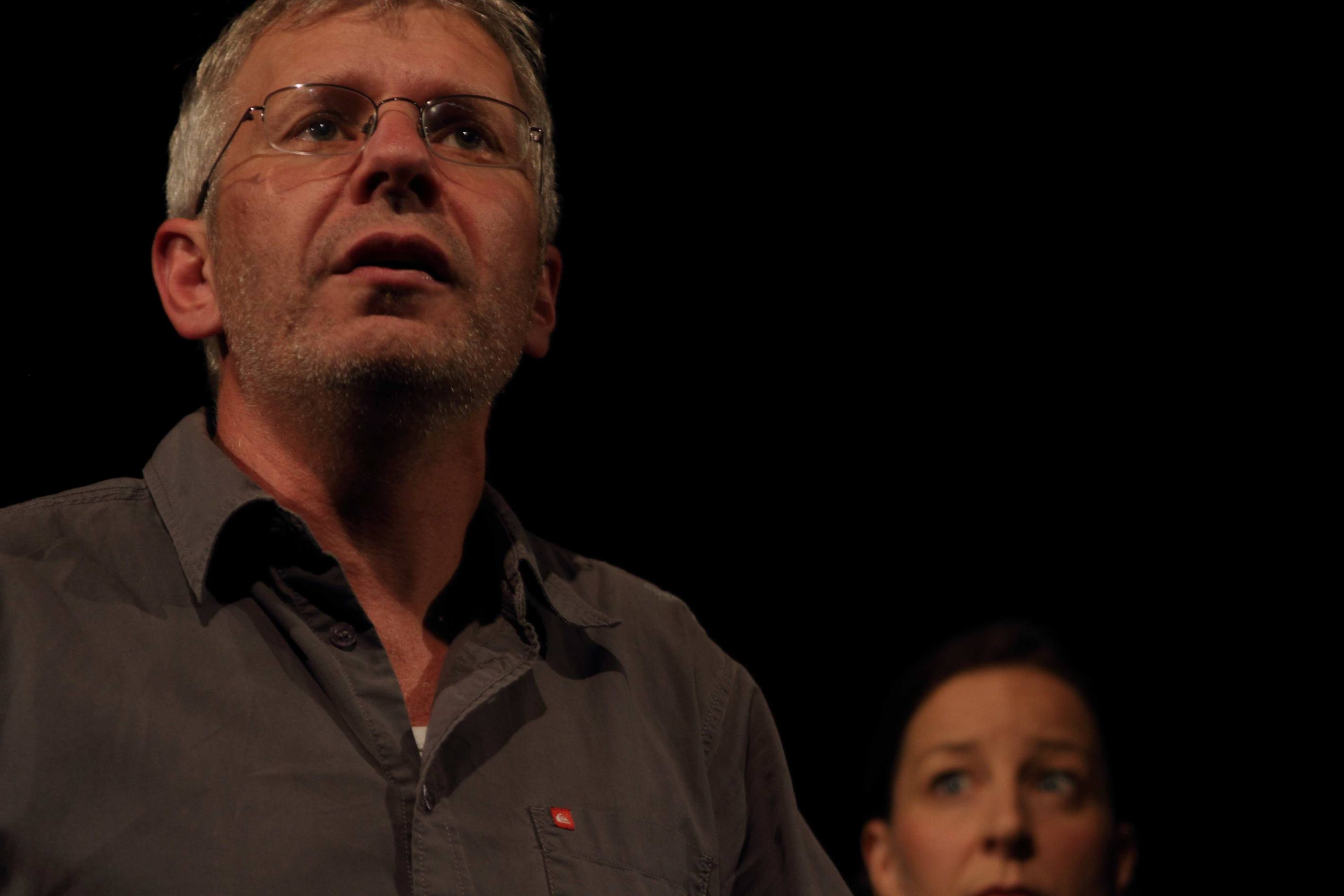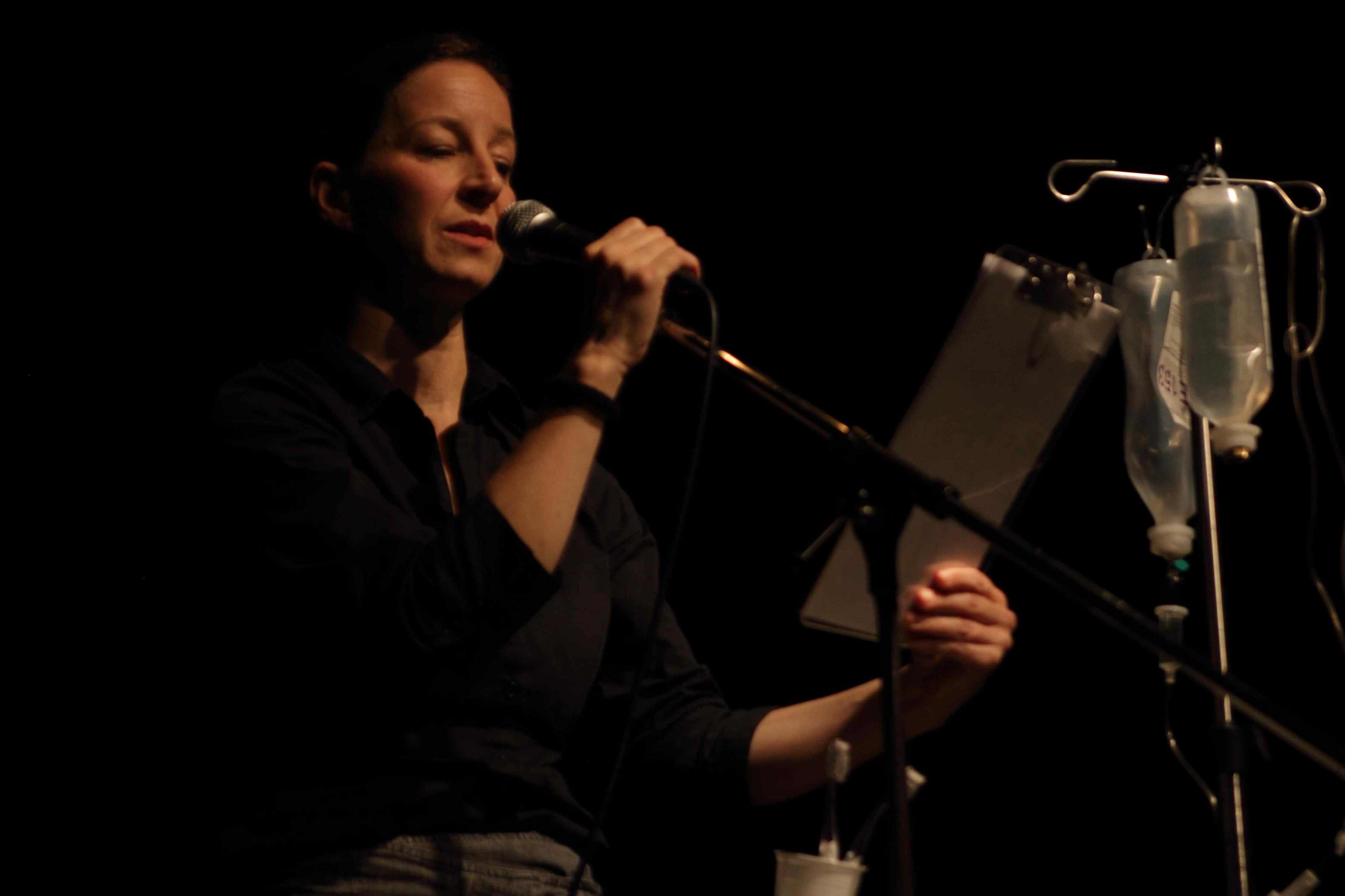 "AUFIGSCHTIEG'N OBAGFALL'N HIN GWÖS'N - ABGÄNGE" | Eine installative Lesung nach den Romanen „Zündels Abgang“ und „Die kalte Schulter“ von Markus Werner 31. Januar 2015 | 20 Uhr | Schaubühne Lindenfels LEIPZIG Es spielen Verena Noll und Andreas Guglielmetti „Man hat ja inzwischen fast vergessen, dass so ein Theater überhaupt möglich ist. ... In der installativen Lesung ABGÄNGE werden zentrale Motive aus den Romanen „Zündels Abgang“ und „Die kalte Schulter“ des Schweizer Schriftstellers Markus Werner miteinander verschränkt und die Handlung auf bildhafte und theatrale Übersetzung untersucht. Die Arbeit bewegt sich an der Schnittstelle von Schauspiel, Lesung und Installation. Die Figuren in Markus Werners Werk scheitern beständig an den Anforderungen des Lebens, misstrauen konsequent der Idee von Sicherheit, fühlen sich unzugehörig. Sie treten ab, rebellieren, verstummen. Als Gegenpol zu dieser „haltlosen“ Welt tritt in Werners Texten die Begegnung zwischen Mann und Frau, die scheinbar Sicherheit bietet und Geborgenheit verspricht, bis die Angst vor dem Scheitern zu einer Verweigerung der Liebe führt oder der Tod auftritt und die Entscheidung abnimmt. In „Die kalte Schulter“ findet der Kunstmaler MORITZ WANK in der Dentalhygienikerin JUDITH Orientierung und Lebenssinn, die ihm durch den banalen Stich einer Biene, der Judith das Leben kostet, wieder entzogen werden. In „Zündels Abgang“ bricht der Lehrer KONRAD ZÜNDEL nach der gescheitert geglaubten Ehe mit MAGDA zu einer Reise nach Italien auf, von der er nicht zurückkehrt. Sie endet vielmehr im radikalen Bruch mit dem bürgerlichen Leben und dem „Paktieren mit der Realität“. In unserer Fassung werden beide Geschichten im Wechsel in sechs Sequenzen erzählt, wobei der immer dramatischere Gemütszustand Zündels durch die inselhafte Liebe der „Verschonten“ Judith und Wank kontrastiert wird. Die Bühne orientiert sich zeichenhaft-minimalistisch an Orten und Motiven der Texte. Infusionsständer dienen den Schauspielern – die ständig zwischen Figur, Leser und Sprecher changieren – als Halt(erung) für den Text. Mit dem Akt des Lesens selbst wird gespielt. Das Nachlesen und Sich-Vergewissern-Müssen der Sprecher in „unsicheren Situationen“ wird für die Figuren zur szenischen Aktion.